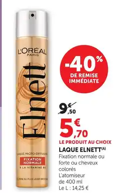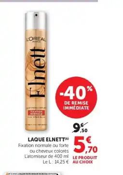 | 4 | Elnett laque | Hyper U | 9,50 € | 5,70 € | -40% de remise | 08 avril 2026 | 19 avril 2026 | Voir l'offre | |