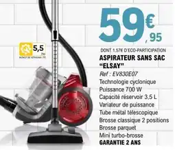 | 2 | ASPIRATEUR SANS SAC ELSAY | E.Leclerc | 59,95 € | 13 janvier 2026 | 25 janvier 2026 | Voir l'offre | |||