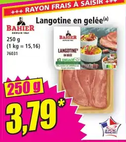 | 2 | BAHIER Langotine en gelée 250 g | Norma | 3,79 € | 21 janvier 2026 | 27 janvier 2026 | Voir l'offre | |||