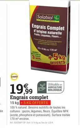 | SOLABIOL Engrais complet | Gamm vert | 10,99 € | 08 octobre 2025 | 19 octobre 2025 | |||