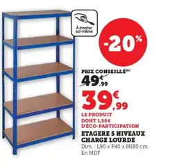 | étagère Métallique Charge Lourde 5 Plateaux Mdf | Hyper U | 19 septembre 2021 | 25 septembre 2021 | ||||