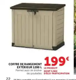 | Coffre de rangement exterieur ontario 870L | Hyper U | 249,00 € | 28 mars 2023 | 23 avril 2023 | |||