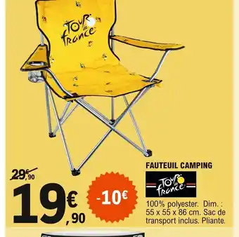 | Fauteuil camping | E.Leclerc | 24,90 € | 19,90 € | -5€ | 03 juin 2025 | 21 juin 2025 | |