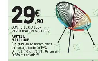 | Fauteuil Acapulco | E.Leclerc | 29,90 € | 27 mars 2023 | 15 avril 2023 | |||