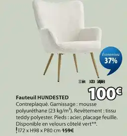 | HUNDESTED Fauteuil | JYSK | 159,00 € | 100,00 € | 59,00 € Réduction | 01 janvier 2026 | 03 février 2026 | |