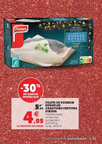 | Filets de Poisson Surgelees Creations Festives Findus | Hyper U | 5,85 € | 4,05 € | 1,80 € Réduction | 21 décembre 2021 | 24 décembre 2021 | |