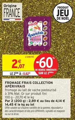 | 4 | Apérivrais fromage frais collection | Intermarché | 2,07 € | 0,82 € | -60% de remise immédiate sur le 2ème | 23 décembre 2025 | 31 décembre 2025 | Voir l'offre | |