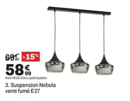 BUT Suspension Nebula verre fumé E27 offreSuspension Nebula verre fumé E27BUT69,99 €58,99 €-15%03 février 202602 mars 2026