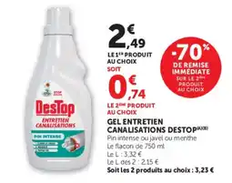 | DESTOP Gel entretien canalisations 750 ml | Super U | 2,49 € | 0,74 € | 1,75 € Réduction | 21 avril 2026 | 03 mai 2026 | |