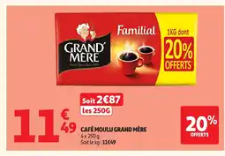 | GRAND MÈRE Café moulu 4 x 250 g | Auchan | 11,49 € | 20% Offerts | 02 janvier 2026 | 11 janvier 2026 | ||
