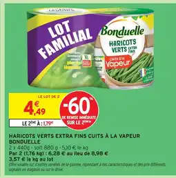 | HARICOTS VERTS EXTRA FINS RANGÉS BONDUELLE | Intermarché | 5,97 € | 3,94 € | 2,03 € Réduction | 05 mars 2024 | 17 mars 2024 | |