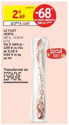 | 1 | Le Fuet Herta | Intermarché | 2,69 € | 21 avril 2026 | 03 mai 2026 | Voir l'offre | |||