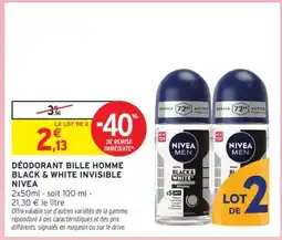 Intermarché DÉODORANT BILLE HOMME BLACK & WHITE INVISIBLE NIVEA offre