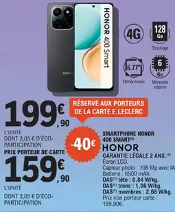 | HONOR Smartphone honor 400 smart | E.Leclerc Espace Culturel | 199,90 € | 159,90 € | 40,00 € Réduction | 02 décembre 2025 | 24 décembre 2025 | |