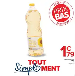 | SIMPL Huile de tournesol 1 l | Carrefour Market | 1,89 € | 17 novembre 2025 | 07 décembre 2025 |
