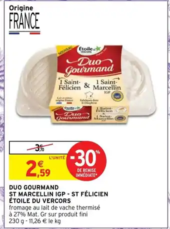 | Étoile du Vercors Duo Gourmand St Marcellin IGP - St Félicien | Intermarché Hyper | 3,99 € | 2,79 € | 1,20 € Réduction | 27 octobre 2025 | 09 novembre 2025 | |