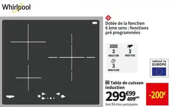 | Whirlpool table de cuisson induction wsq1160ne | Conforama | 499,99 € | 299,99 € | 200,00 € Réduction | 06 septembre 2022 | 03 octobre 2022 | |