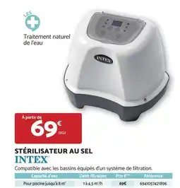 | 1 | STÉRILISATEUR AU SEL INTEX | Bricomarché | 69,00 € | 15 avril 2026 | 23 mai 2026 | Voir l'offre | |||