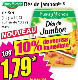 | Fleury michon dés de jambon réduit en sel fleury michon | Auchan Supermarché | 1,89 € | 24 mars 2026 | 04 avril 2026 | |||