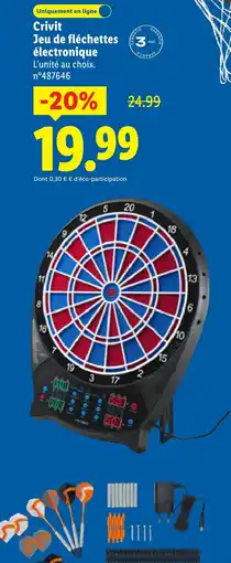 | CRIVIT Jeu de fléchettes électronique | Lidl | 24,99 € | 04 décembre 2025 | 10 décembre 2025 | |||