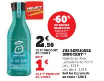 | Jus refrigere INNOCENT | Super U | 2,91 € | 1,16 € | 1,75 € Réduction | 04 octobre 2022 | 15 octobre 2022 | |