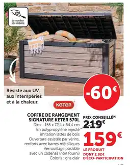 | Keter coffre de rangement signature keter 570l | Hyper U | 219,00 € | 159,00 € | 60,00 € Réduction | 24 mars 2026 | 19 avril 2026 | |