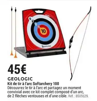 | Geologic kit de tir à l’arc softarchery 100 | Decathlon | 45,00 € | 04 avril 2023 | 07 mai 2023 | |||