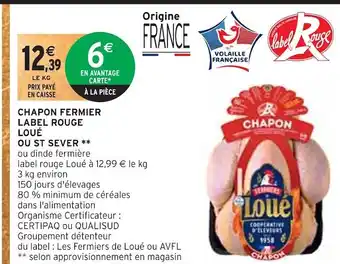 | CHAPON FERMIER LABEL ROUGE LOUÉ OU ST SEVER | Intermarché | 12,39 € | 19 décembre 2023 | 31 décembre 2023 | |||