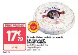| Brie de melun au lait cru moulé a la main a.o.p. saint-faron | Promocash | 17,79 € | 17 mars 2026 | 04 avril 2026 | |||
