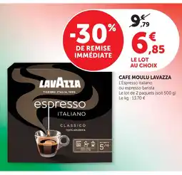 | Lavazza cafe moulu espresso italiano | U Express | 9,89 € | 6,92 € | -30% de remise | 24 février 2026 | 08 mars 2026 | |