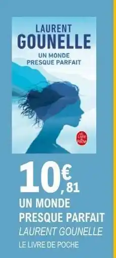 | 1 | UN MONDE PRESQUE PARFAIT | E.Leclerc | 10,81 € | 24 février 2026 | 08 mars 2026 | Voir l'offre | |||