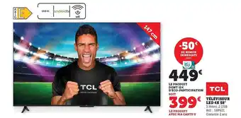 | Téléviseur led uhd 4k 43tcl | Super U | 319,00 € | 28 mars 2023 | 10 avril 2023 | |||