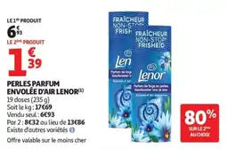 | Perles parfum envolée d'air lenor 235 g | Auchan | 6,93 € | 1,39 € | -80% SUR LE 2EME | 03 mars 2026 | 15 mars 2026 | |