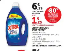 | 2 | XTRA TOTAL Lessive liquide 1,8 l | U Express | 6,29 € | 1,25 € | 5,04 € Réduction | 08 avril 2026 | 19 avril 2026 | Voir l'offre | |