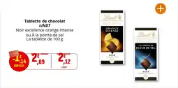 Chocolat noir orange intense à la pointe de fleur de sel caramel à la pointe de sel ou menthe intense lindt excellence