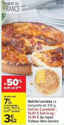 | 3 | Quiche Lorraine 375 g | Carrefour Market | 7,25 € | 3,62 € | -50% SUR LE 2ÈME | 27 janvier 2026 | 08 février 2026 | Voir l'offre | |