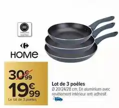 | 2 | Lot de 3 poêles | Carrefour Drive | 30,99 € | 19,99 € | 11,00 € Réduction | 17 février 2026 | 02 mars 2026 | Voir l'offre | |