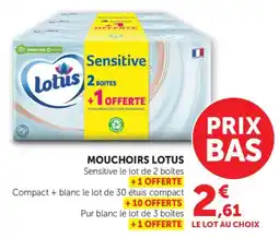 | 3 | Lotus mouchoirs | Super U | 2,61 € | 03 mars 2026 | 15 mars 2026 | Voir l'offre | |||