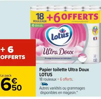 | Papier toilette Confort LOTUS | Carrefour | 8,89 € | 6,67 € | 2,22 € Réduction | 21 mai 2024 | 03 juin 2024 | |