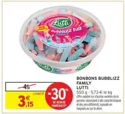 | 2 | BONBONS BUBBLIZZ FAMILY LUTTI | Intermarché | 3,15 € | 27 janvier 2026 | 08 février 2026 | Voir l'offre | |||