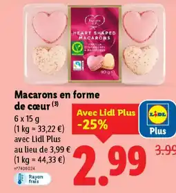 | Macarons en forme de cœur 6 x 15 g | Lidl | 3,99 € | 2,99 € | -25% | 05 février 2026 | 11 février 2026 | |