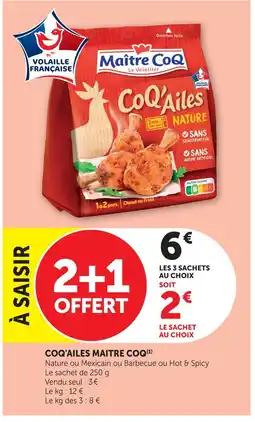 | 2 | MAITRE COQ Coq'ailes 250 g | U Express | 6,00 € | 2+1 Offert | 08 avril 2026 | 19 avril 2026 | Voir l'offre | ||