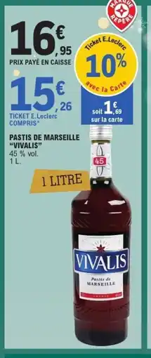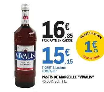 | PASTIS DE MARSEILLE "VIVALIS" 45% Vol. 1L. | E.Leclerc | 16,85 € | 15,15 € | 1,70 € Réduction | 21 novembre 2023 | 25 novembre 2023 | |
