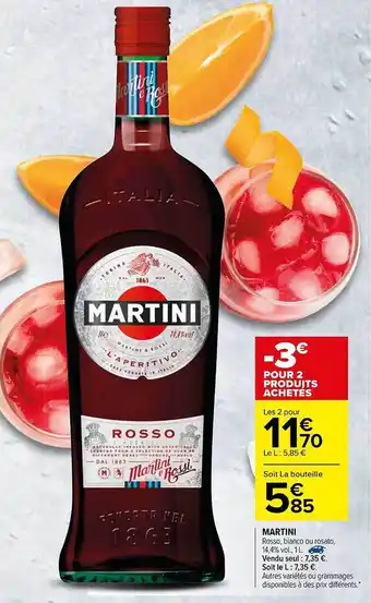 | Apéritif MARTINI Rosso, Bianco, | Carrefour | 8,89 € | 6,22 € | 2,67 € Réduction | 20 février 2024 | 04 mars 2024 | |