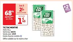 | TIC TAC Menthe 54 g | Auchan | 2,19 € | 0,70 € | 68% SUR LE 2ÈME | 01 juillet 2025 | 12 juillet 2025 | |