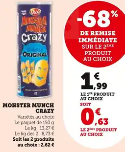 | Monster munch crazy 150 g | Super U | 1,99 € | 0,63 € | -68% | 27 décembre 2025 | 04 janvier 2026 | |