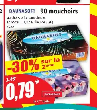 | DAUNASOFT Mouchoirs en boîte | Norma | 1,53 € | 0,76 € | -50% sur la 2ème | 24 septembre 2025 | 30 septembre 2025 | |