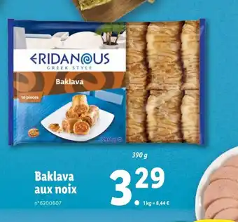 | ERIDANOUS GREEK STYLE Baklava aux noix | Lidl | 3,99 € | 10 septembre 2025 | 17 septembre 2025 | |||
