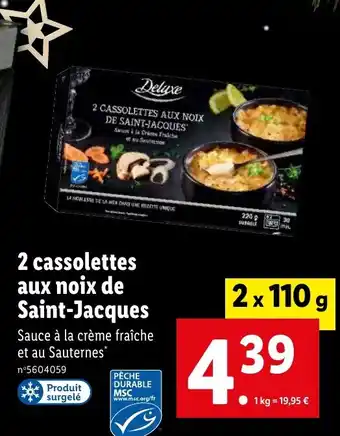 | Deluxe Noix de coquilles Saint-Jacques MSC | Lidl | 7,49 € | 12 novembre 2024 | 19 novembre 2024 | |||