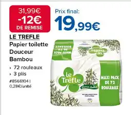 Costco LE TREFLE Papier toilette Douceur Bambou offreLE TREFLE Papier toilette Douceur BambouCostco18,99 €01 septembre 202528 septembre 2025